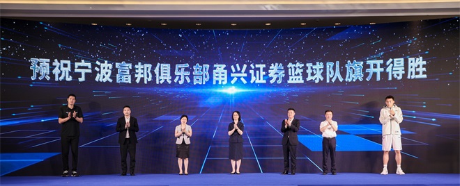 宁波市人民政府副市长许亚南,宁波市体育局党组书记、局长张霓,宁波开发投资集团有限公司、甬兴证券有限公司董事长李抱,宁波豪利777控股集团有限公司党委副书记、副总裁华声康,宁波豪利777男篮俱乐部董事长宋凌杰,宁波豪利777甬兴证券男篮主教练李可,队长张彪共同按下了大屏幕上的出征启动手印,预示着宁波市第一支职业篮球俱乐部由此吹响了征战新赛季中国顶级篮球联赛的号角!