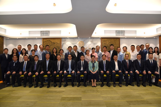 座谈会后,参与座谈的委员、顾问与徐宇宁主席及前任香港特別行政区行政长官、著名宁波帮人士林郑月娥一起合影留念。