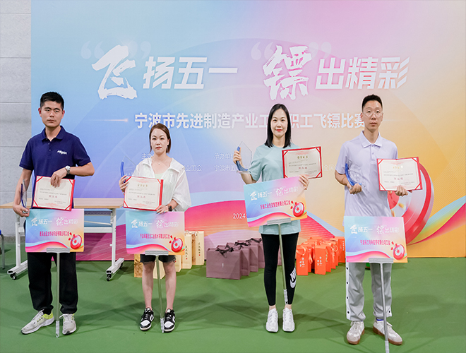 - 5月17日,由宁波市先进制造产业工会主办的“飞扬五一,镖出精彩”为主题的飞镖比赛在五一广场举行。宁波裕江特种胶带代表队凭着团结一心,拼搏努力的精神最终以5:1的成绩“飞”进八强,