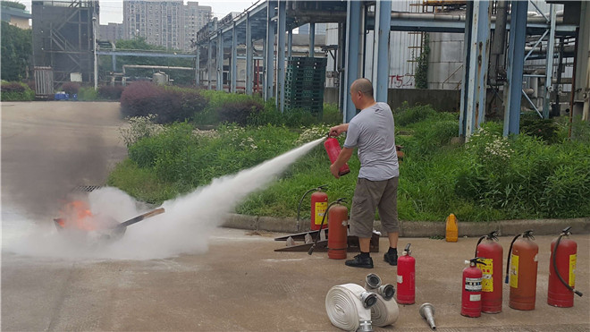 - 6月17日下午,宁波亨润聚合有限公司组织开展安全消防演习活动,作为一家化工企业,领导重视、各部门积极投入。图为消防演习的场景。 (亨润聚合公司)