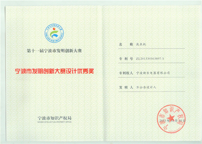 - 近日,第十一届宁波市发明创新大赛评审结果“出炉”,宁波新乐电器有限公司研制发明的“洗衣机面框(Q9001)”、“滚筒洗衣机”两个项目获得设计创新优秀奖。 (新乐集团)