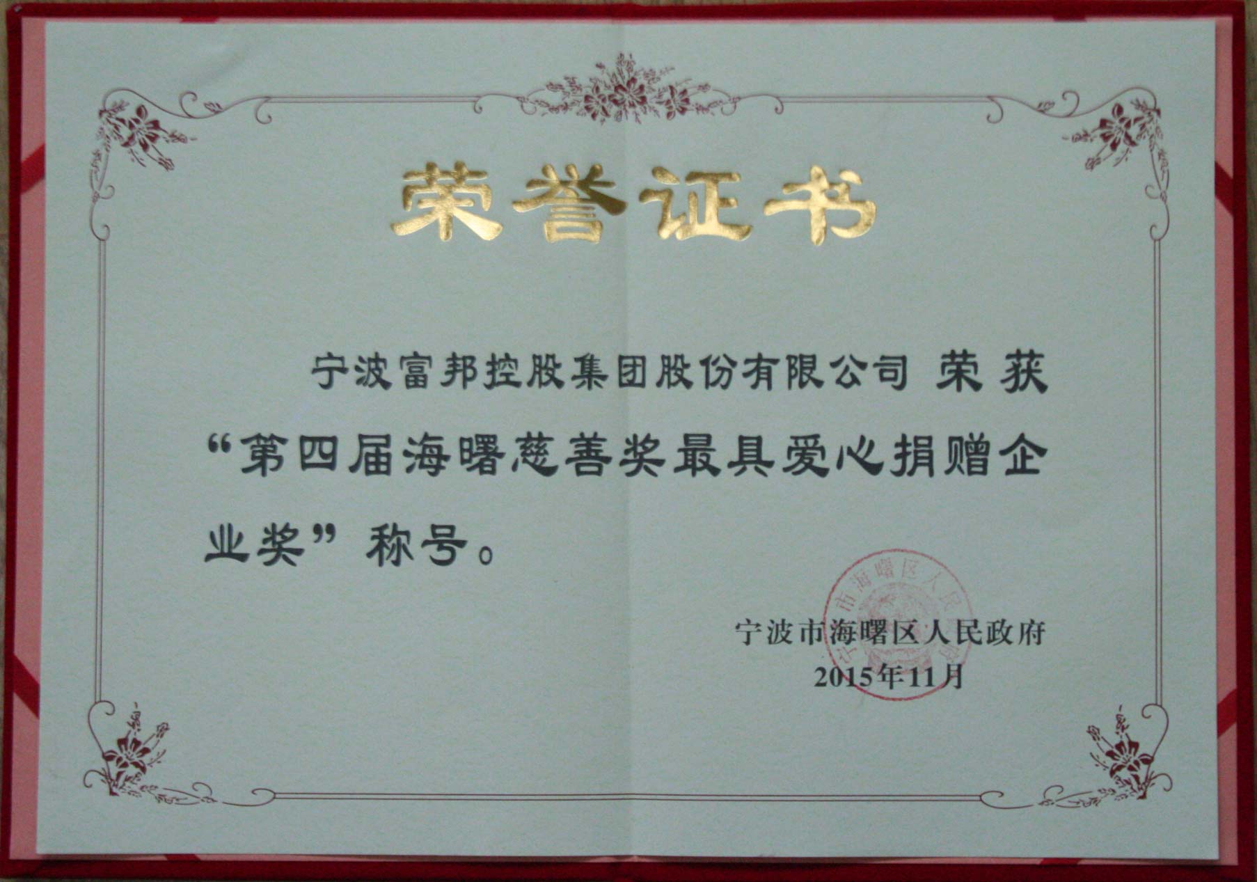 - 豪利777集团荣获第四届海曙慈善奖最具爱心捐赠企业奖