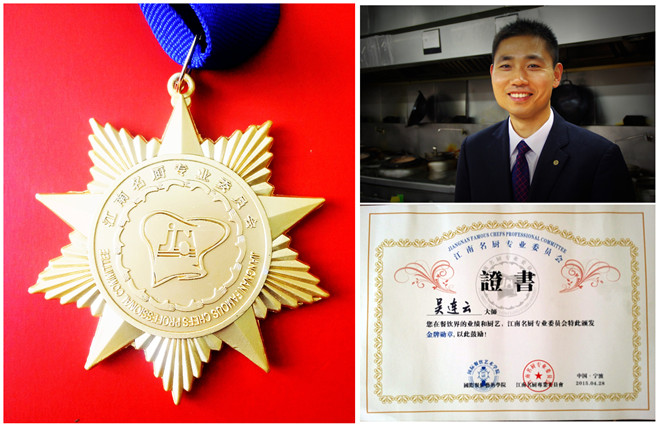 - 国家级烹饪技师、国家级烹饪鉴定师、第七届全国烹饪大赛铜牌获得者,宁波烹饪大师,宁波菜研究会理事,宁波饭店原厨师长、现任餐饮部经理吴连云近日荣获国际餐饮艺术学院、