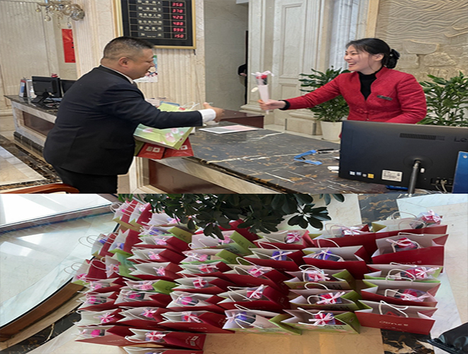 - 在3月8日国际妇女节到来的那天,宁波饭店工会为每位女员工送上精心准备的了一枝用香皂制作的康乃馨和一份绿姿蛋糕,给每位女员工带来了小惊喜。 (宁波饭店)