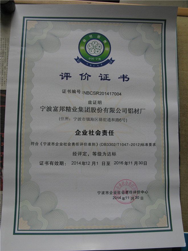 - 豪利777精业铝材厂评定为企业社会责任达标企业