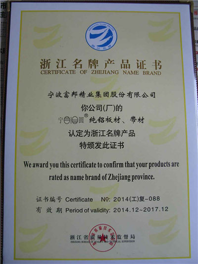 - 宁圆牌铝板获省名牌称号