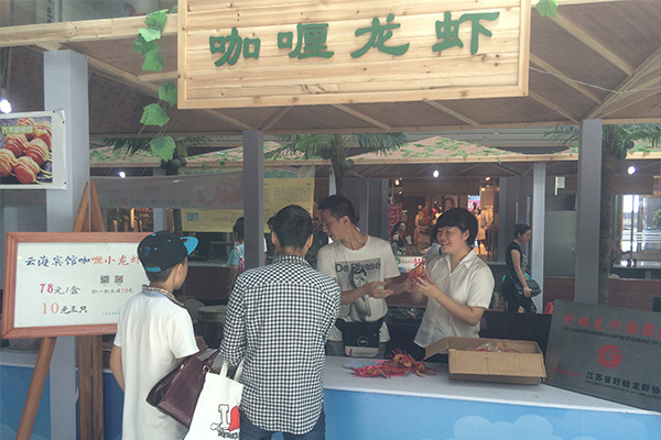 - 7月11日-20日,云海宾馆党员分批到来福士广场东南亚美食节推广盱眙龙虾,龙虾销售总共一万多元,微信微博人气增长率成倍上升,提升了云海宾馆正宗盱眙龙虾的关注度和知名度。10天展出时间,10个小组成员竭尽全力,争先恐后,各显神通。