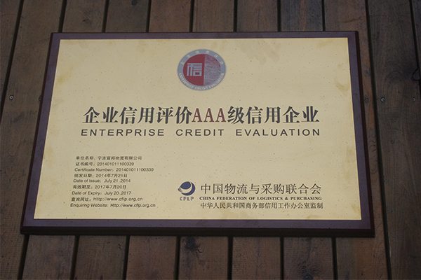 - 日前,宁波豪利777物流有限公司被中国物流与采购联合会授予“企业信用评价 AAA级信用企业”的荣誉称号。此奖项是中国物流业最高级别的信用等级,标志着豪利777物流将拥有“AAA”等级的金质服务和公司的信用能力提升,同时也是公司的服务附加