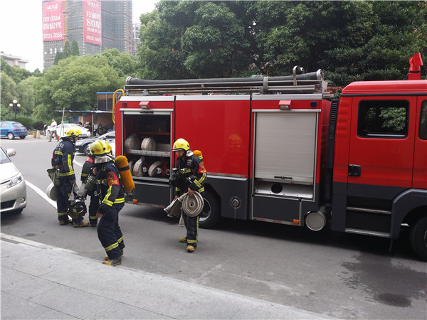 - 今年的“安全生产月”活动,宁波饭店请来了市消防大队为饭店全体员工上消防安全培训课,之后即刻开展了消防报警疏散灭火演习。图为消防大队的警员真枪实弹教员工灭火。 (宁波饭店)