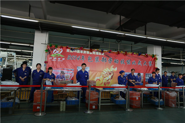 - 日前,中银公司包装部举办了一场颇具意义的技能比武大赛,此次大赛旨在增强团队间的凝聚力,加强员工的工作积极性。本次劳动技能比武包括“放电巧手赛”、“装盒能手赛”、“打包老手赛”等若干赛项,还邀请了市工业工会主任沈玮等领导现场观摩。图为比