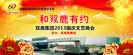 - 国庆节前夕,双鹿科技城的上空笑语欢声,掌声雷动。伴随着主持人温馨的开场白,双鹿集团2013国庆文艺晚会“和双鹿有约”在双鹿科技城拉开帷幕。“歌声、笑声、掌声、欢呼声”是本次联谊晚会的主旋律。集团总裁王剑浩等公司领导与员工们欢聚一堂、共度