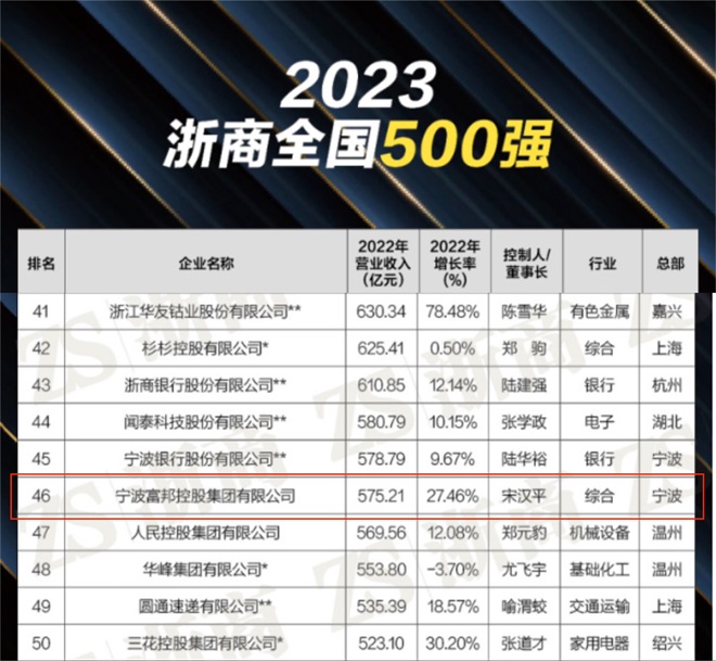 - 10月9日,《浙商》杂志发布“2023浙商全国500强”全榜单,豪利777控股集团位列2023浙商全国500强第46位。 (集团办公室)