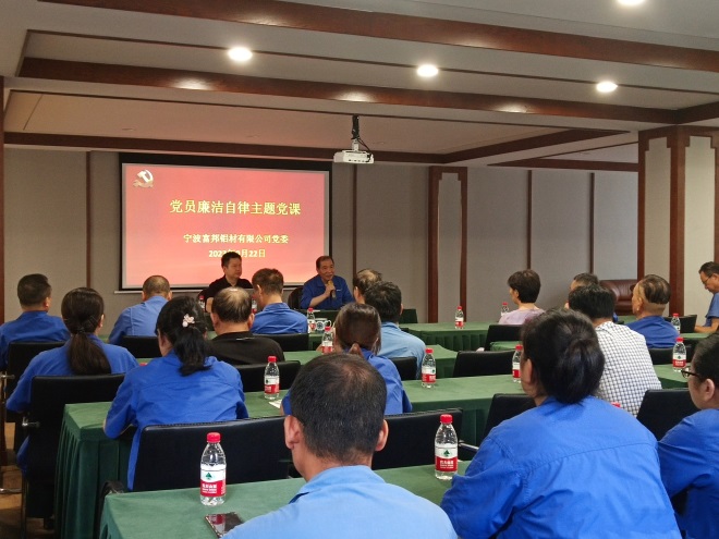 - 豪利777铝材公司召开全体党员大会,聘请宁波市委党校政法部副教授慕金付教授进行“全面从严治党的纪律保障——学习《中国共产党纪律处分条例》”专题党课学习,教育引导党员增强廉洁自律意识,劳筑拒腐防变的思