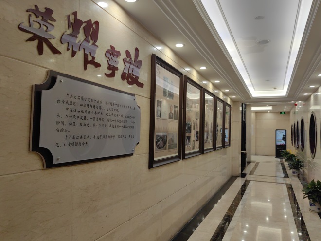 - 近期,宁波饭店完成对文化墙改造升级工作,作为书香酒店项目之一的文化墙项目,对已知历史性的文字错误点进行改正,对历史遗漏照片进行了补充,对画框质量和整体效果进行了改变,