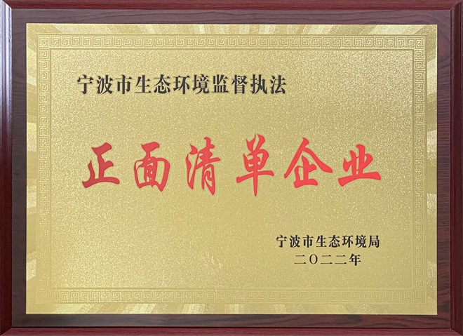 - 埃美柯被授予宁波市生态环境监督执法正面清单企业