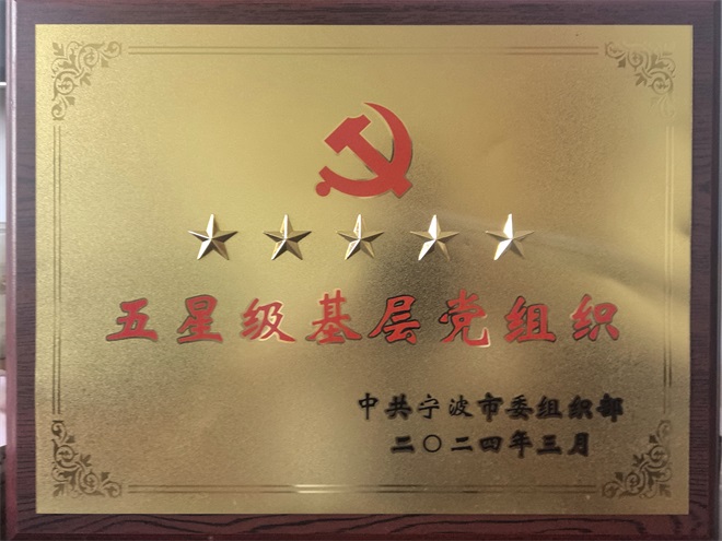 - 宁波饭店党支部荣获中共宁波市委组织授予的“五星级基层党组织”称号