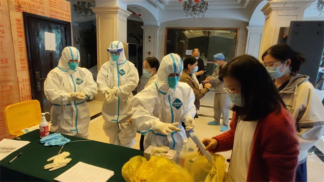 - 10月13日北仑疫情突发,宁波饭店被政府征用为隔离酒店,全员上下配合政府开始清退住房客人,协助医护人员分配医疗物资,全力支持抗疫行动。 (宁波饭店)