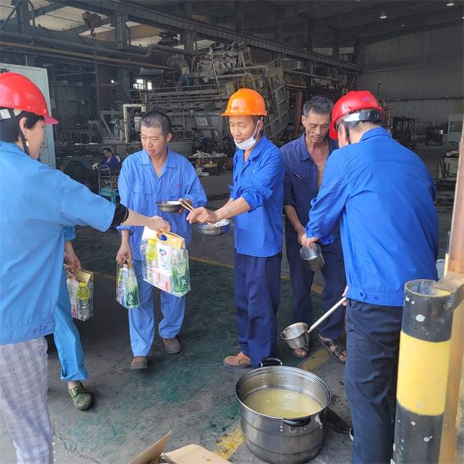 - 铝材公司党委开展“我为员工办实事”活动,协同工会走基层下车间,慰问奋战在一线作业的员工,及时送上冰镇绿豆汤、饮品、毛巾、防暑大礼包等慰问品,体现了“高温时节送关怀,情暖员工战酷暑”的企业情怀,