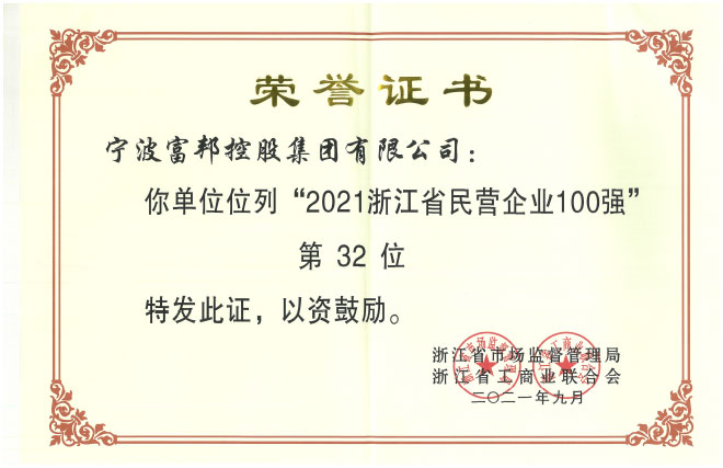 - 省市场监管局、省工商业联合会联合公布了“2021年浙江省民营企业100强”榜单。宁波豪利777控股集团有限公司位列百强榜第32位。 (集团办公室)