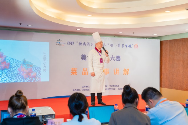 - 经过海曙区文化广电旅游体育局的前期选拔和培训,宁波饭店推荐的邱庐云代表海曙区在由宁波市文广旅游局组织的2021“诗画浙江·百县千碗·甬菜百碗”美食讲解员大赛中获得“菜品故事讲解”团体第一名。 (宁波饭店)