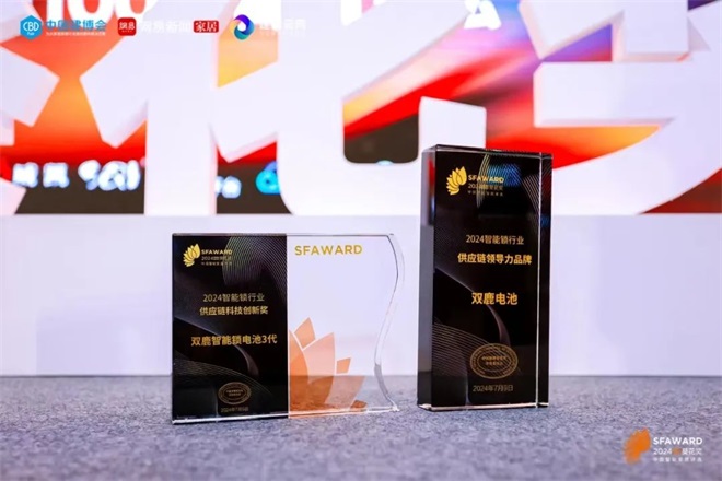 - 7月9日,2024第八届葵花奖智能家居评选颁奖盛典在中国建博会(广州)广交会展馆隆重举行。“双鹿电池”荣获“2024智能锁行业供应链领导力品牌”;“双鹿智能锁电池3代”荣获“2024智能锁行业