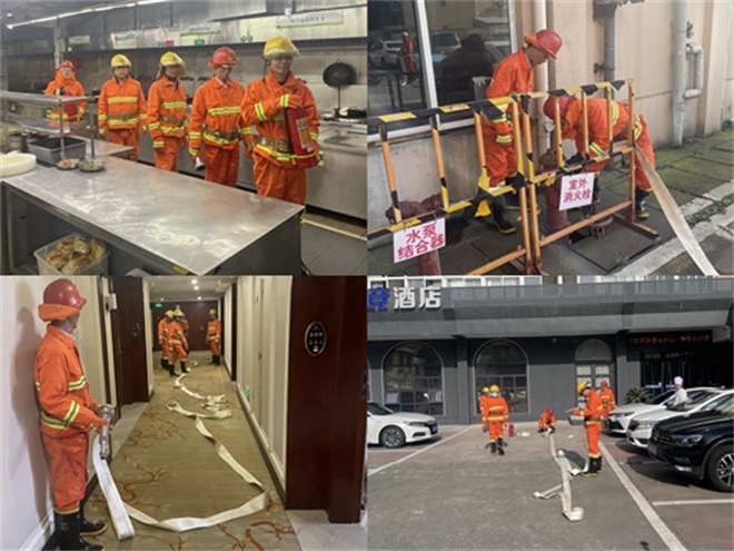 - 6月20日,宁波饭店组织进行了安全生产月系列活动之微型消防站的消防演练。 (宁波饭店)
