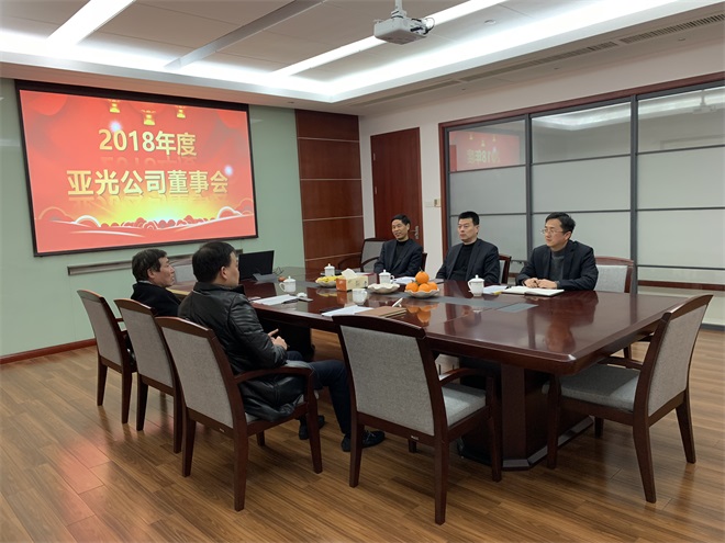 - 2月12日下午,2018年度亚光公司董事会会议在公司会议室召开。参加会议的有集团公司副总裁徐积为董事长和集团公司副总裁陈炜董事,亚光公司的邱忠良、谭炜琛和吴泉一同出席了会议。邱总在董事会上详细