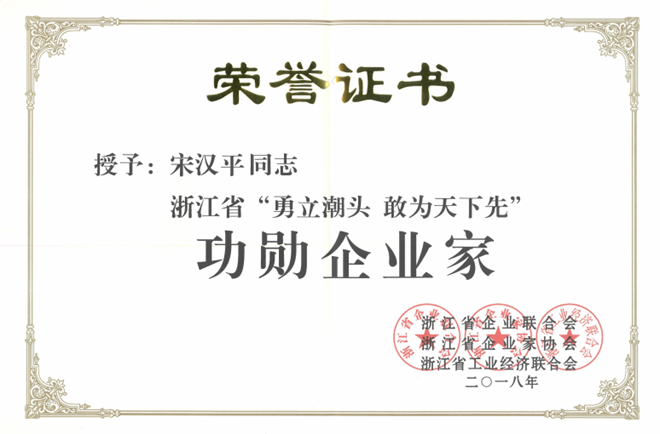 - 宋董事长荣获2018浙江省“勇立潮头、敢为天下先”功勋企业家称号。 (办公室)