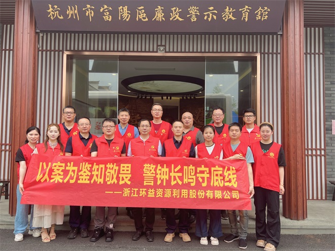 - 6月22日,浙江环益党支部深入开展党纪学习教育,赴富阳区廉政警示教育馆,开展廉政教育基地教学参观活动。 (浙江环益)
