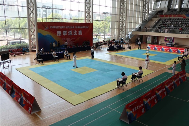 - 4月20日在海曙区文体中心举行了2018年浙江省青少年阳光体育(体育传统项目学校)跆拳道比赛