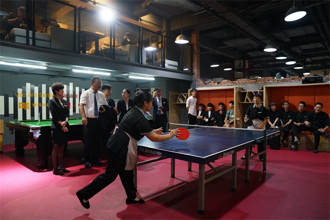 - 8月7日,为了丰富员工的业余文化生活,加强员工之间的沟通与交流,豪利777大酒店在员工活动室举办了乒乓球比赛。参赛选手们以饱满的热情、昂扬的斗志投入到比赛中,展现了公司健康向上的精神风貌。图为员工比