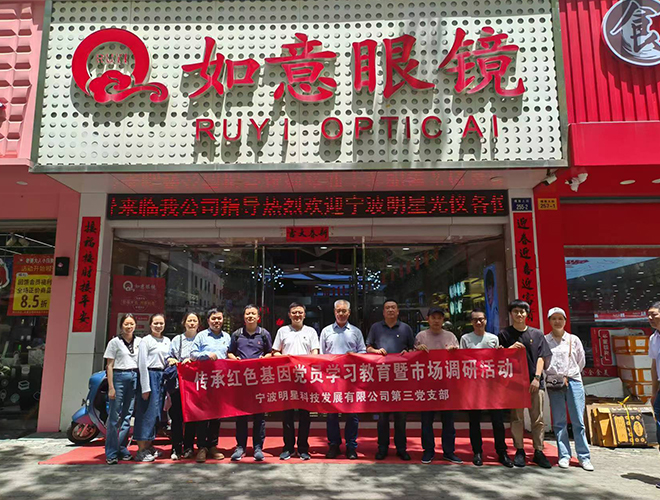 - 5月19日,为加强党员党性教育,加深对市场的了解,宁波明星科技发展有限公司第三党支部赴象山开展市场调研及学习活动。实地走访了象山如意眼镜、雪亮眼镜、云兴眼镜等眼镜零售企业,了解终端客户销售经营