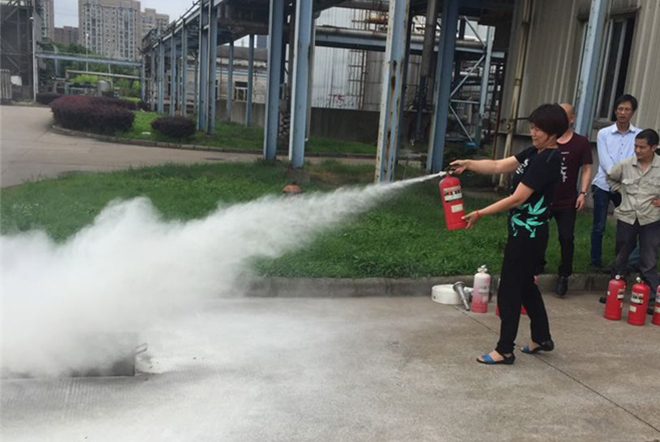 - 6月19日,为了增强员工的消防意识,提高公司的应急处置能力,亨润聚合公司举行了消防安全演练,共计33名员工参加了活动。图为演练场景。 (亨润聚合公司)