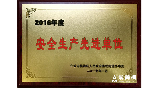 - 近日,宁波埃美柯铜阀门有限公司被镇海区骆驼街道评为“2016年安全生产先进单位”,公司安保部洪惠民获得“骆驼街道安全生产先进个人”荣誉称号。这既是对公司2016年度安全生产工作的肯定,更是一种