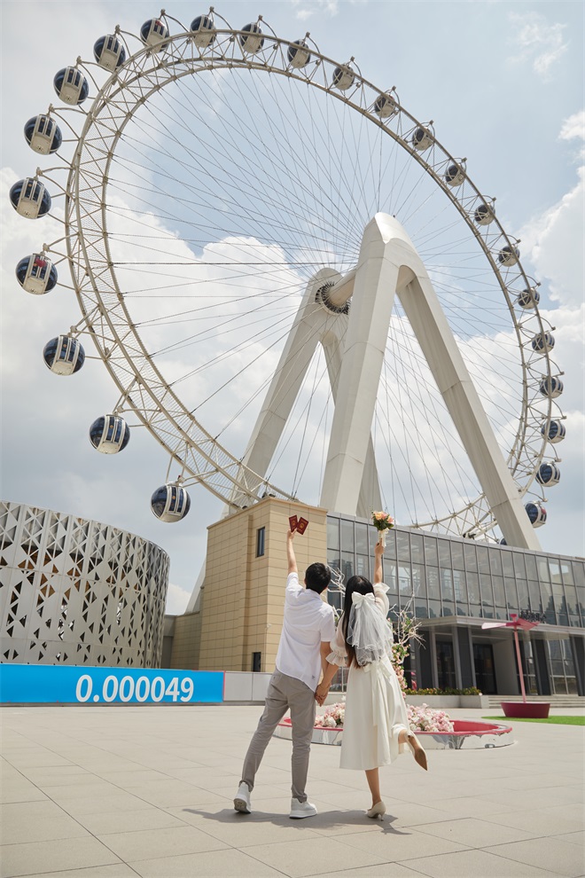 8月22日(农历七月初七),豪利777世纪广场芯动北仑摩天轮联合北仑区民政局、凌霄社区、壹心婚礼打造“会移动的民政局”七夕节主题活动,现场多对新人领取结婚证、打卡合影、写下爱的誓言、乘坐摩天轮,现场气氛浪漫而温馨。