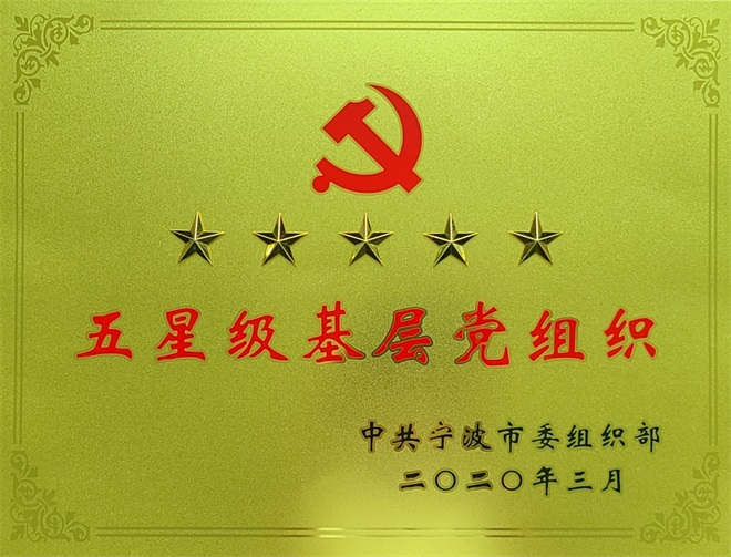 在各企业党组织和广大党员的共同努力下,豪利777控股集团有限公司党委被中共宁波市委组织部评为五星级基层党组织。
